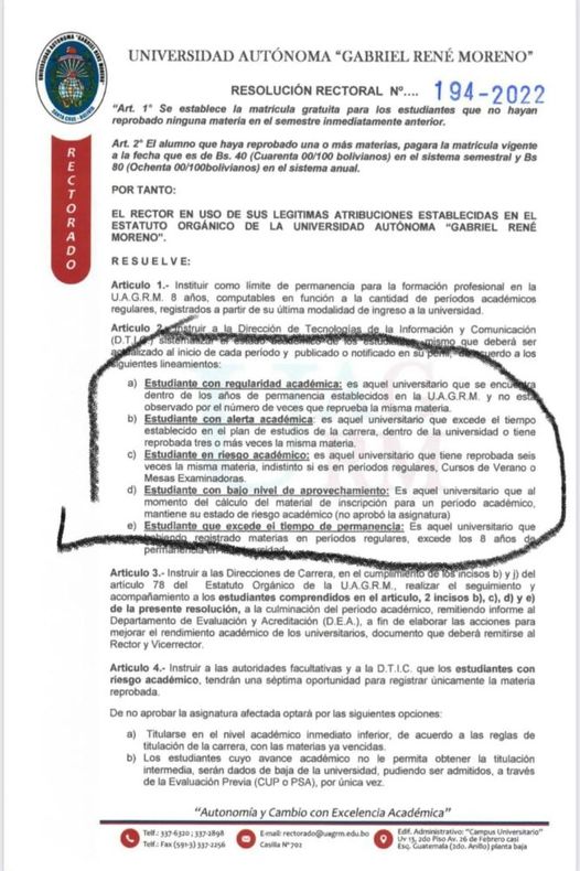 #SCZ: #UAGRM decreta 8 años como límite de permanencia estudiantil El Rector de la UAGRM, Vicente Cuellar, informó que el límite de permanencia del estudiante en la universidad será de 8 años. La resolución rectoral establece como riesgo de permanencia aplazarse seis veces en una materia.