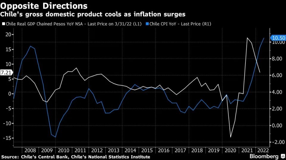 #Chile | Camino a la estanflación: el crecimiento va en franca desaceleración y la inflación en doble dígito no hace más que subir pese a los incrementos agresivos de tasas por parte del Banco Central. «Ah pero Boric la tiene clara». https://t.co/ydU4evNKbS