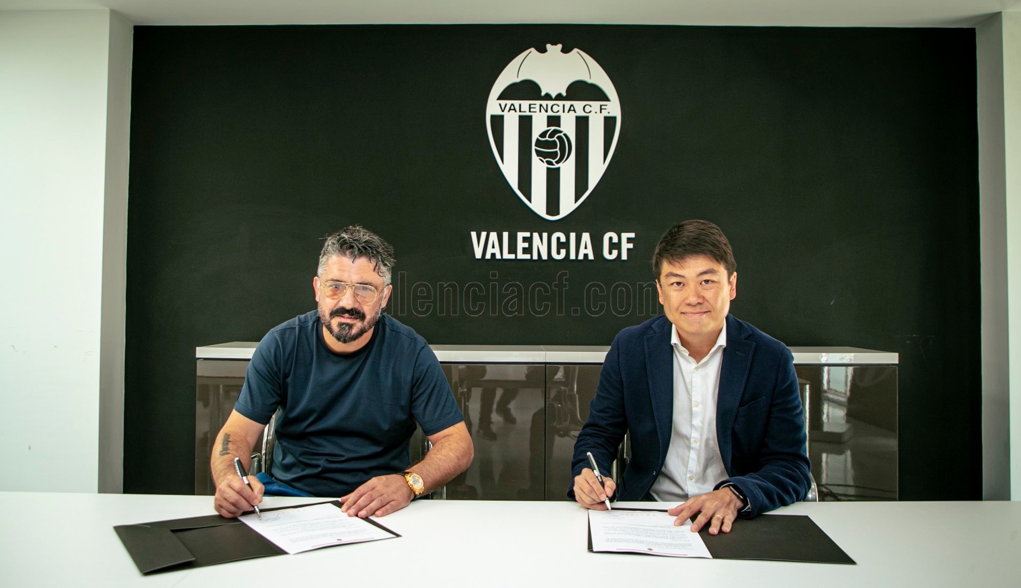 El Valencia 🇪🇸 presentó a Gennaro Gattuso 🇮🇹 como su nuevo director técnico. El estratega italiano firma por dos temporadas, hasta junio del 2024.