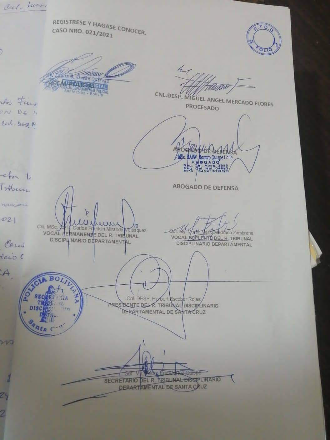 El ministro de Gobierno, Eduardo del Castillo, informó que se dispuso la baja definitiva del Cnl. Miguel Ángel Mercado, quien incurrió en una falta disciplinaria grave según el art.14 núm. 3 de la Ley 101, por incurrir en actos que deshonraron a Símbolos Patrios y al uniforme policial.