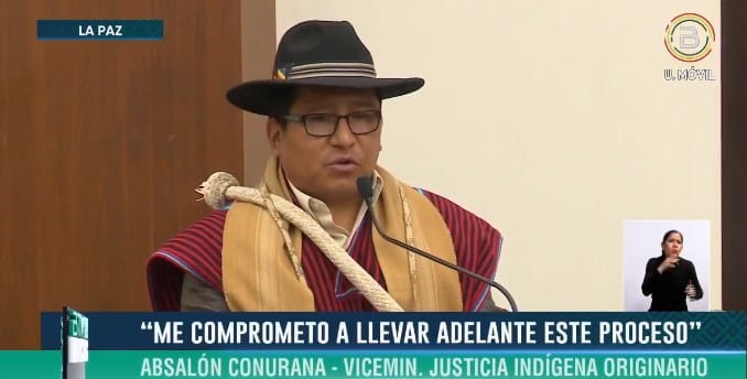 El ministro de Justicia, Iván Lima, posesionó este viernes a Absalón Conurana, como viceministro de Justicia Indígena Originario Campesina.