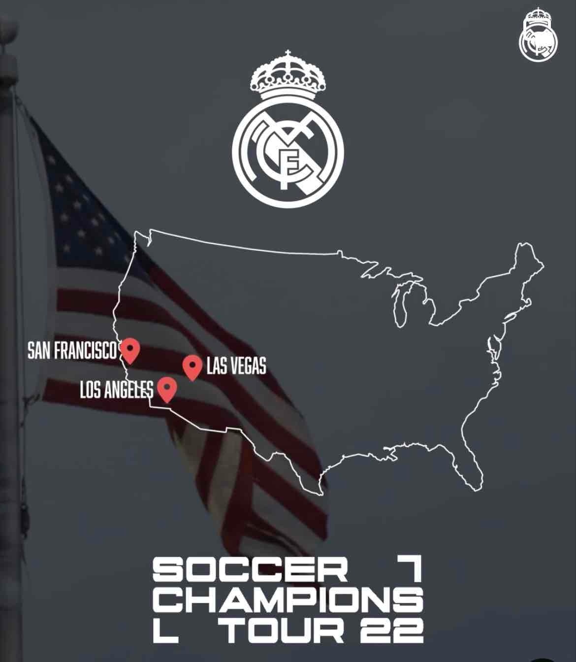Estos son los partidos que Real Madrid solventará en la Pretemporada en ESTADOS UNIDOS 📆 23 de julio, Allegiant Stadium, Las Vegas: 🆚 Barcelona 🇪🇸 📆 26 de julio, Oracle Park, San Francisco: 🆚 Club América 🇲🇽 📆 30 de julio, Rose Bowl, Los Ángeles: 🆚 Juventus 🇮🇹
