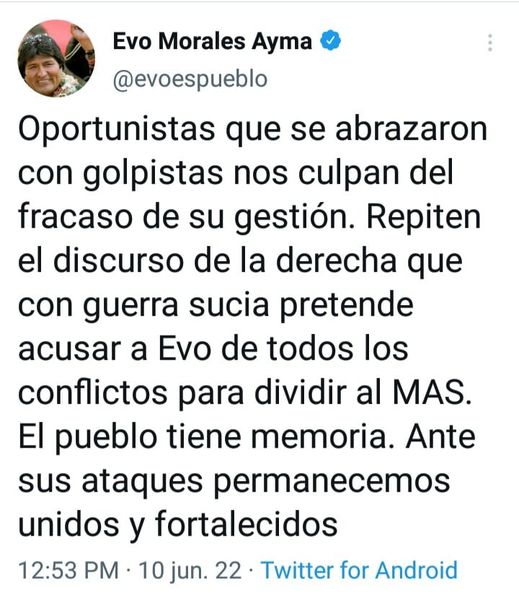 Evo dice que lo quieren acusar de todos los conflictos, asegura estar fortalecido