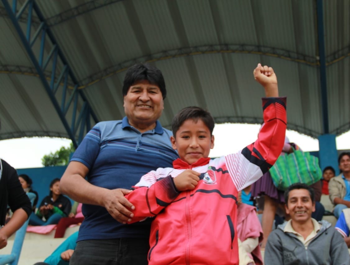 Hoy el hermano #EvoMorales espectaba la final de los juegos estudiantiles del municipio de Villa Tunari Colegio San Francisco vs Colegio Todos Santos.