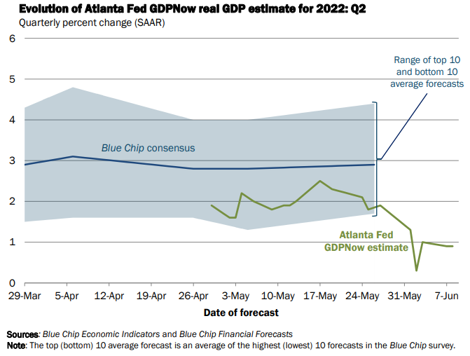 La probabilidad de una recesión sube al 65% con la inflación interanual al 8.6%, máximos de 41 años. Se revisan proyecciones de crecimiento a la baja.