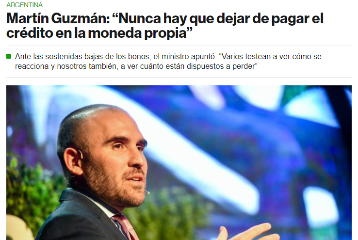 Martín Guzmán: “Nunca hay que dejar de pagar el crédito en la moneda propia”.