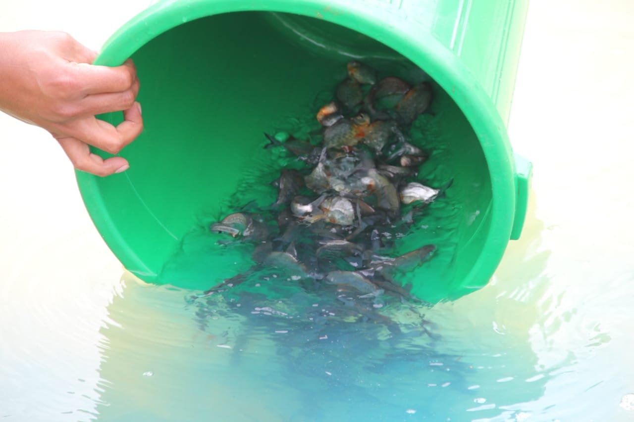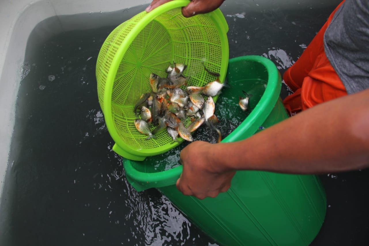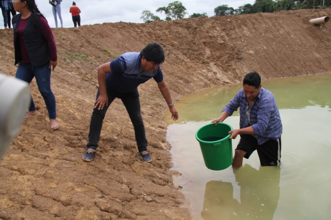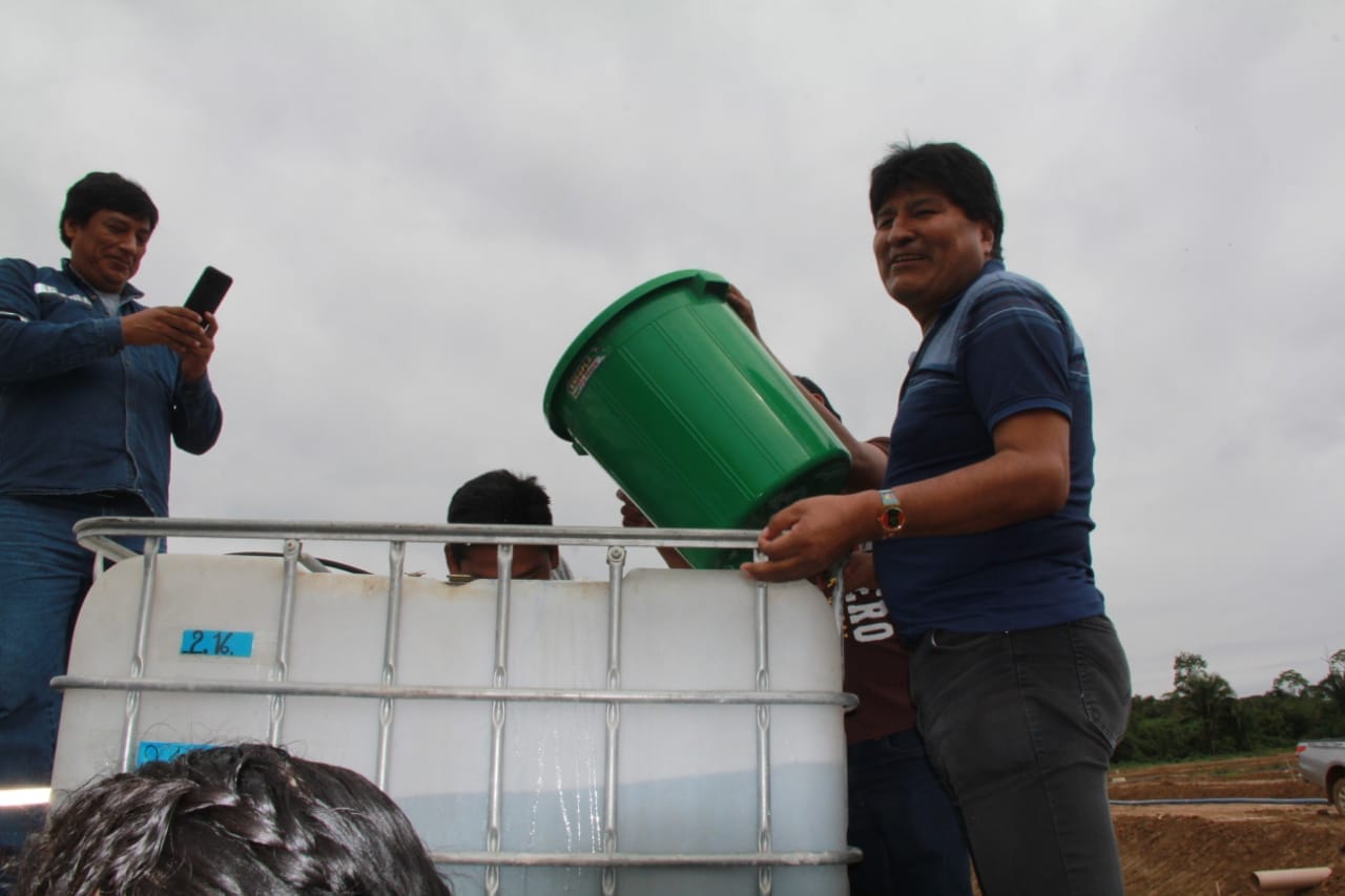 Lider Evo Morales siembra mas de 10.000 nuevos alevines de Tambaqui en su chaco de San Francisco
