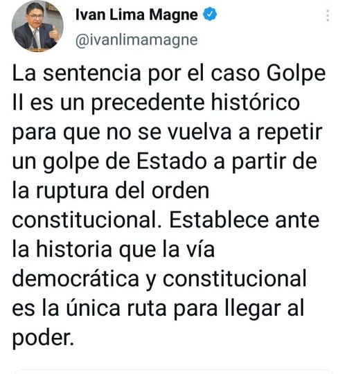 «La sentencia por el caso Golpe II es un precedente histórico para que no se vuelva a repetir un golpe de Estado a partir de la ruptura del orden constitucional», señaló.