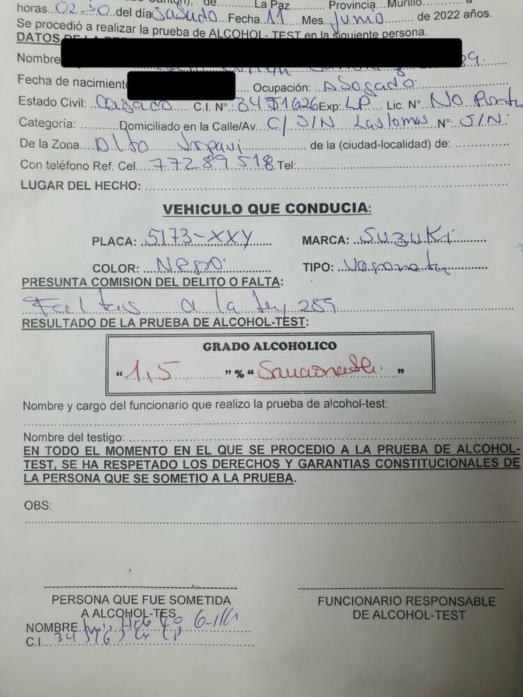 1/2 Comunicamos al pueblo boliviano, que el señor Luis Adolfo Guillen Castillo, abogado de la señora Añez, fue detenido por personal policial de la EPI-Sur por conducir con aliento alcohólico (1.5). https://t.co/9X3BQ8FRAb
