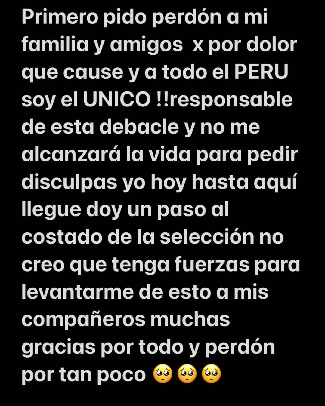 Hace minutos, el lateral de la Selección de Perú, Luis Advíncula confirmó a través de una historia de Instagram que se retira del Seleccionado peruano tras fallar su penal al palo ante Australia y no poder estar en #Qatar2022