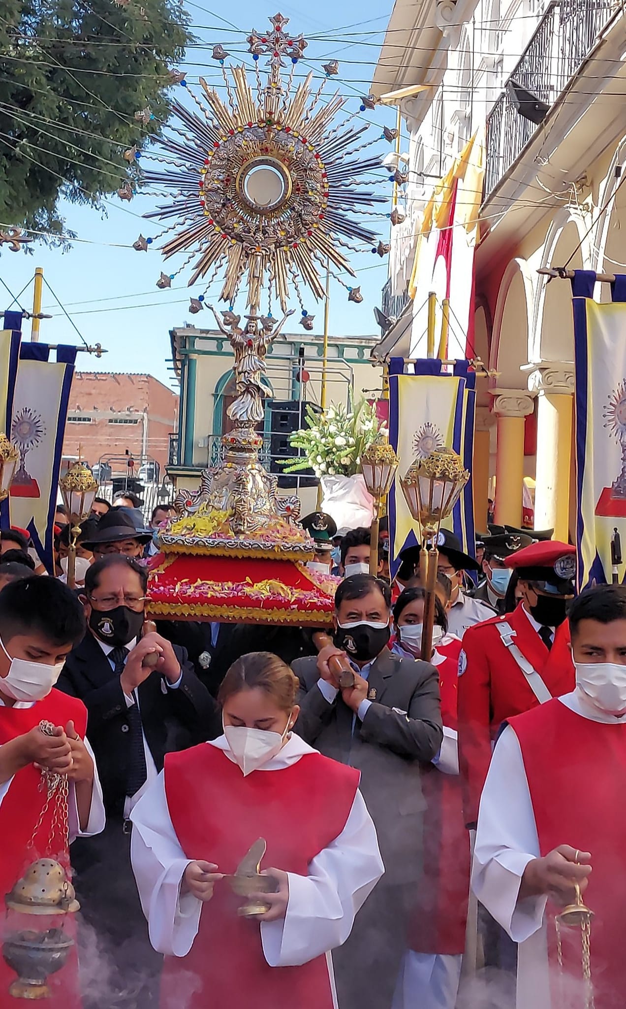 Con la #Fe en la presencia real de Jesucristo a través de su #CuerpoYSangre participamos de la celebración de #CorpusChristi en el templo San Idelfonso del municipio de #Quillacollo.