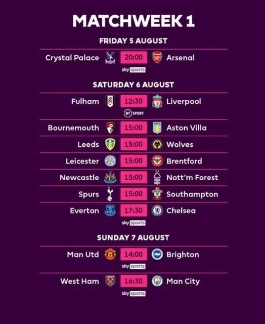 Comienza el viernes 𝟓 𝐝𝐞 𝐚𝐠𝐨𝐬𝐭𝐨 con el Crystal Palace – Arsenal y termina el 28 de mayo.