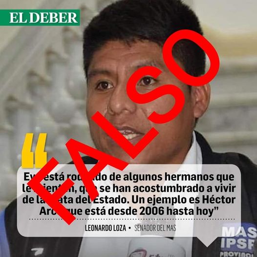 El Senador del MAS, Leonardo Loza, aclara que en ningún momento realizó estas declaraciones, denuncia ante el pueblo boliviano que esta publicación es totalmente FALSO.
