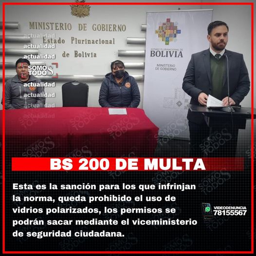 La utilización para el uso de vidrios polarizados será por dos años, así lo dio a conocer el ministro de gobierno Eduardo del Castillo