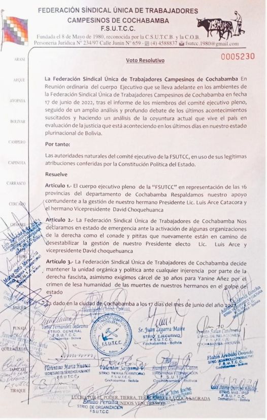 #RKC /// Federación de Campesinos de Cochabamba , se declara en emergencia ante los anuncios de CONADE.