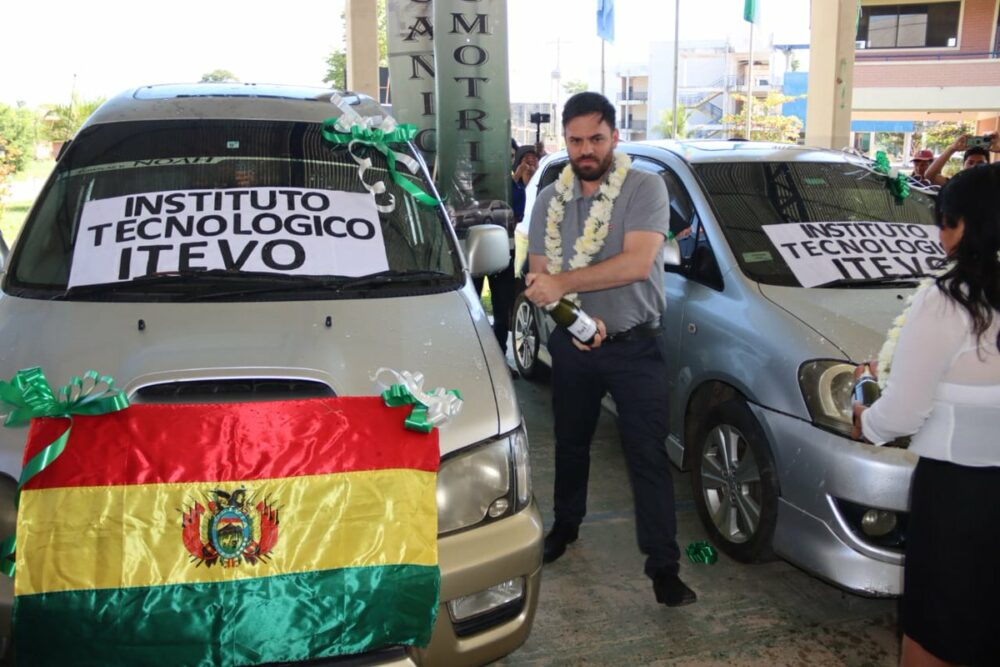 Hace instantes en #ElTrópico de #Cochabamba, iniciando nuestra agenda de domingo, hicimos la entrega de 2 vehículos para el Instituto Técnico «Evo Morales» para que los estudiantes de la carrera de Mecánica Automotriz puedan realizar sus prácticas: https://t.co/UZgR6pQVxT https://t.co/GxDGFCgpFI