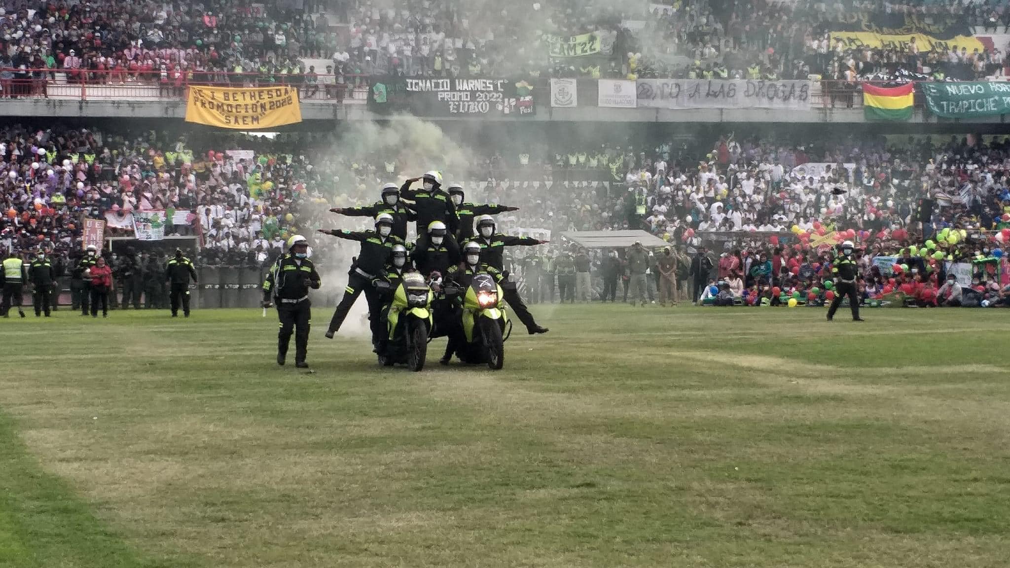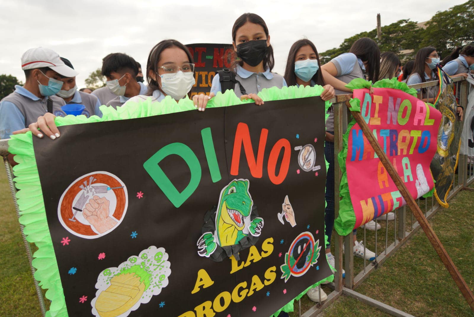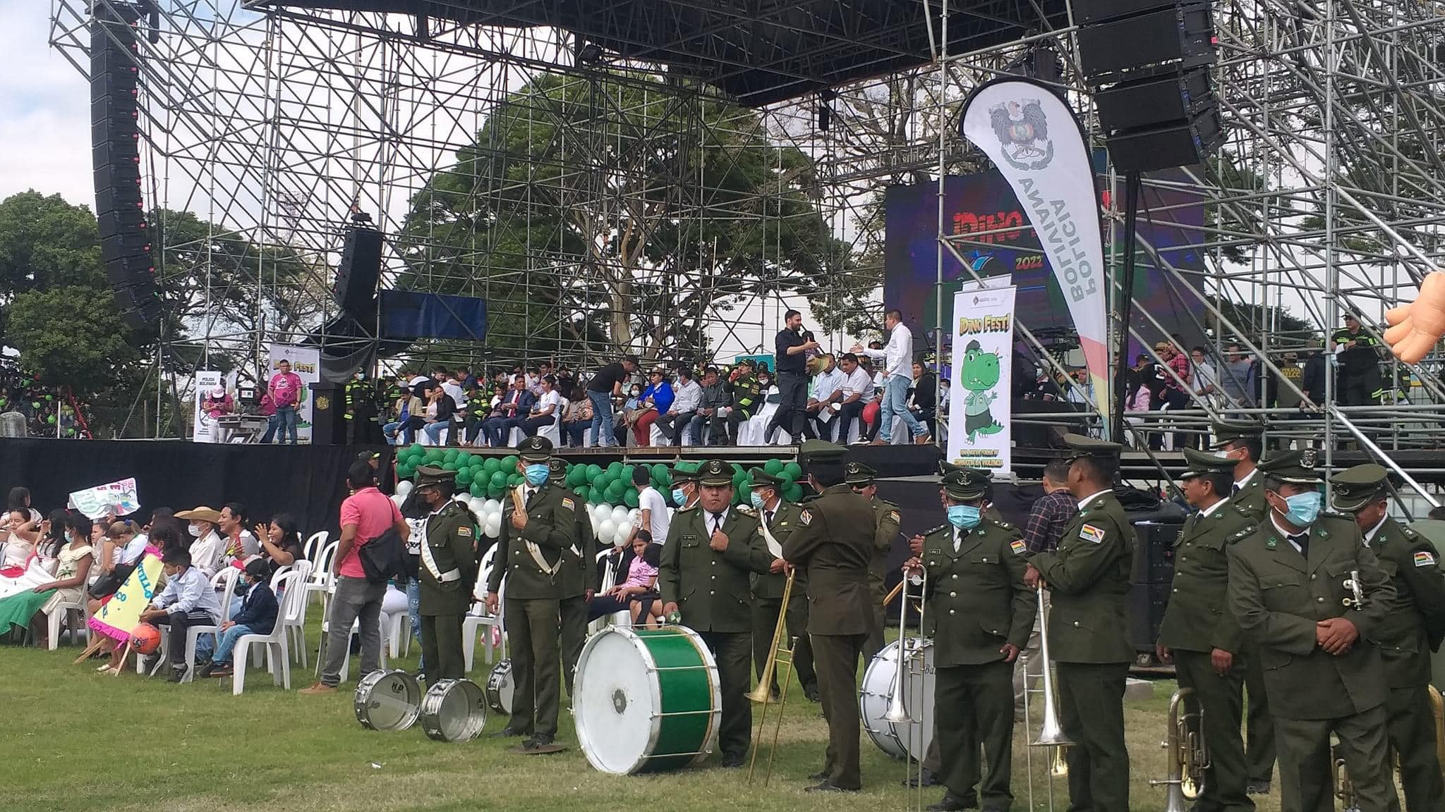 Con presencia del Ministro de Gobierno, Carlos Eduardo del Castillo, la Policía boliviana realiza el «Dino Fest» en el estadio Real Santa Cruz con más de 12.000 alumnos de diferentes unidades educativas y con la participación de las diferentes unidades policiales. Varios de ellos portan creativos disfraces y carteles con mensajes de prevención sobre el consumo de drogas.