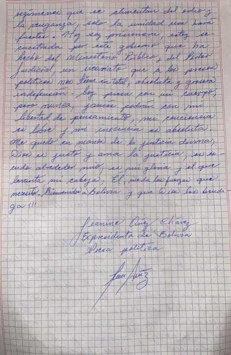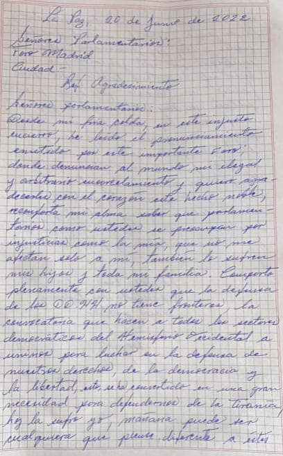 Áñez agradece visita del Foro de Madrid, “Gobierno a hecho a fiscalía y poder judicial un sicariato de presos políticos”