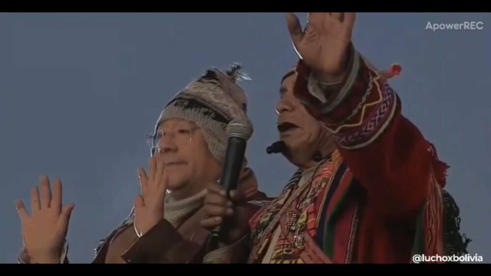 Así el presidente Luis Arce recibió los primeros rayos del sol en Tiwanaku en el Año Nuevo Andino Amazónico y del Chaco. Estuvo junto a Evo Morales.