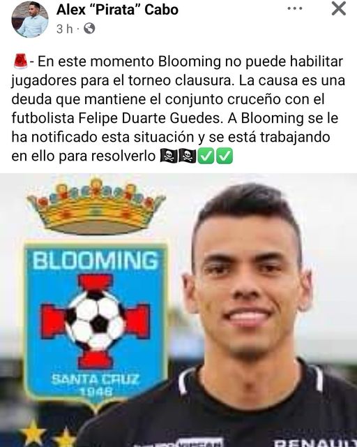 A decir se Alex Cabo, Blooming no puede habilitar jugadores.