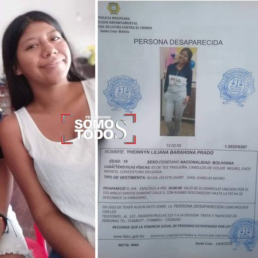 Ella es Yheinnyn Liliana Barahona Prado de 18 años, esta desaparecida desde el pasado 19 de Junio, cuando salió de su domicilio en el 5to anillo de la avenida Santos Dumont, su familia está muy preocupada y pide ayuda para encontrarla.