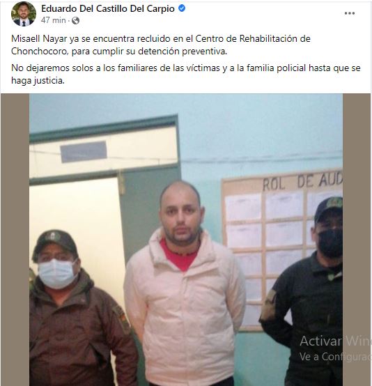 🔵#ANF | #Seguridad Después de varios días de no referirse al tema, el ministro de Gobierno @EDelCastilloDC, informó que Misael Nallar se encuentra en la cárcel de Chonchocoro. Afirmó que no dejarán a las familias de las víctimas hasta que se haga justicia. https://t.co/IzthD8QijX