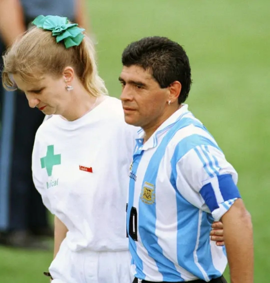 25 de junio de 1994. Argentina le gana a Nigeria 2 a 1 en el Mundial de EE UU, ese sería el último partido de Diego Maradona en la Selección,. Maradona se retiraba de la cancha dándole la mano a una enfermera.