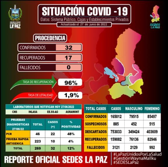 🔵 #ANF | #Salud El Sedes de #LaPaz registra 32 nuevos casos de #COVID19 y 17 recuperados. pic.twitter.com/Z68okyo0Jr