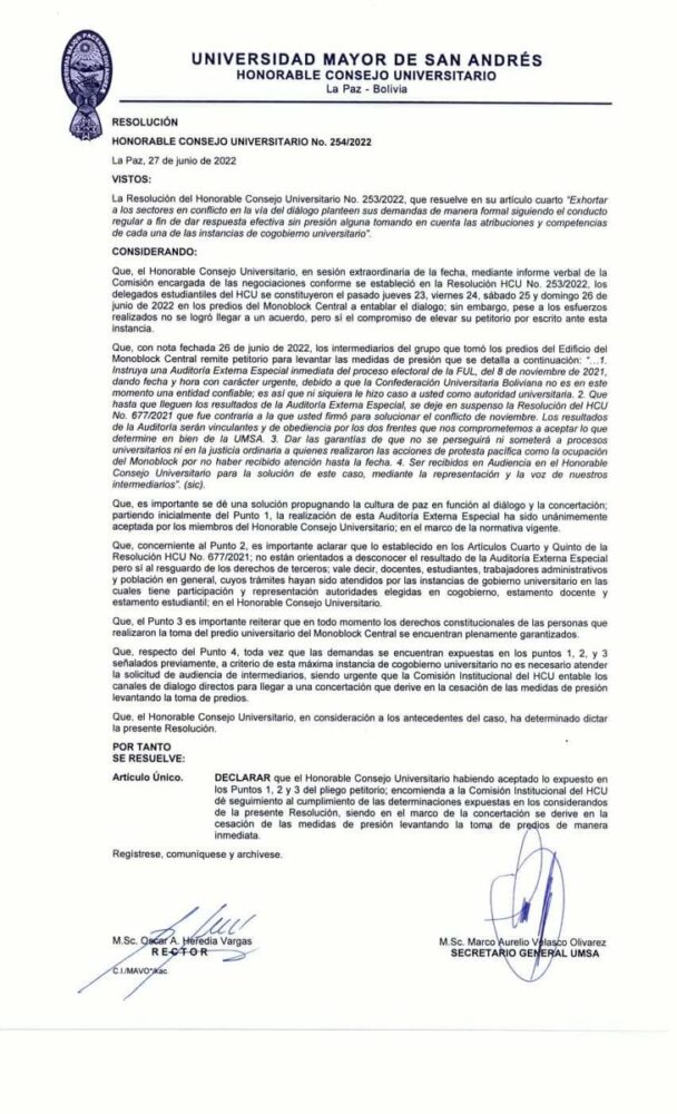 🔵 #ANF | #Sociedad El HCU de la UMSA acepta realizar una «Auditoría Extrema Especial» a las elecciones de la Federación Universitaria Local (FUL), que se llevó adelante el 8 de noviembre de 2021, a petición del grupo de universitarios que tomó las instalaciones de la Monoblock. https://t.co/GGNR0yvgu5