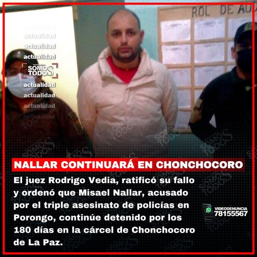 El juez Vedia fundamentó que no peligra la vida de Nallar en Chonchocoro y que tampoco está grave de salud como argumentó su defensa.