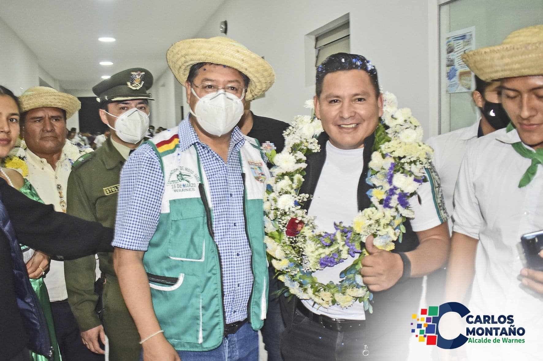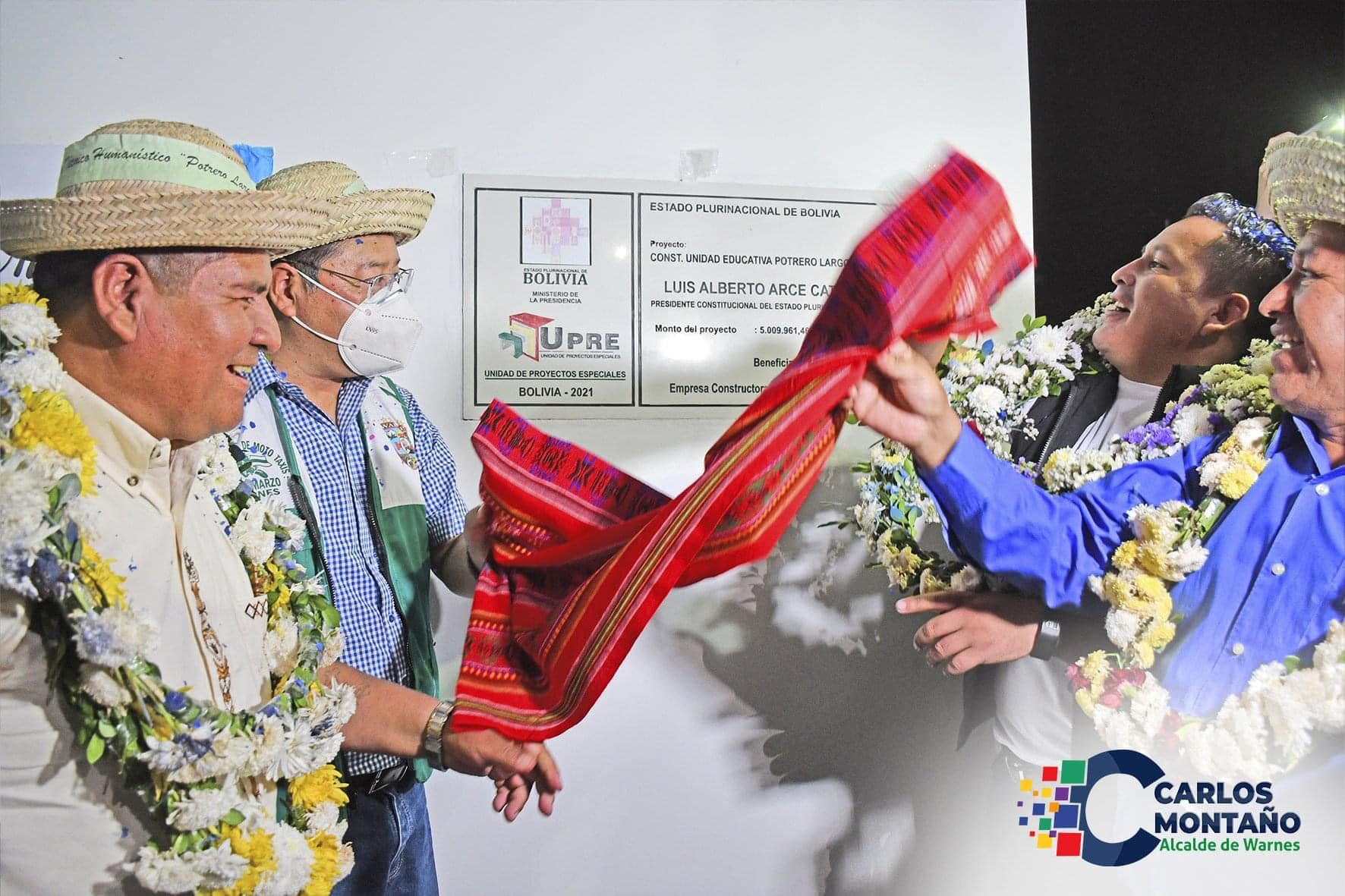 El Presidente Luis Arce Catacora, visito este miércoles el municipio de Warnes, el Jefe de Estado fue recibido por el alcalde, Carlos Montaño, ambas autoridades inauguraron el Modulo Educativo Potrero Largo, con una inversión de Bs. 5 millones, obra que beneficiara a mas de 400 alumnos.
