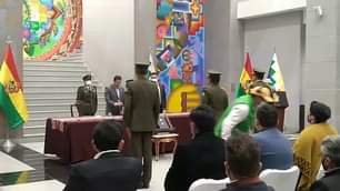 El presidente del Estado Plurinacional de Bolivia, Luis Arce Catacora, posesiona al nuevo Comandante General de la Policía Boliviana.