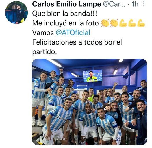 Carlos Lampe, figura del partido. El equipo se hizo la foto mientras Lampe seguía hablando…