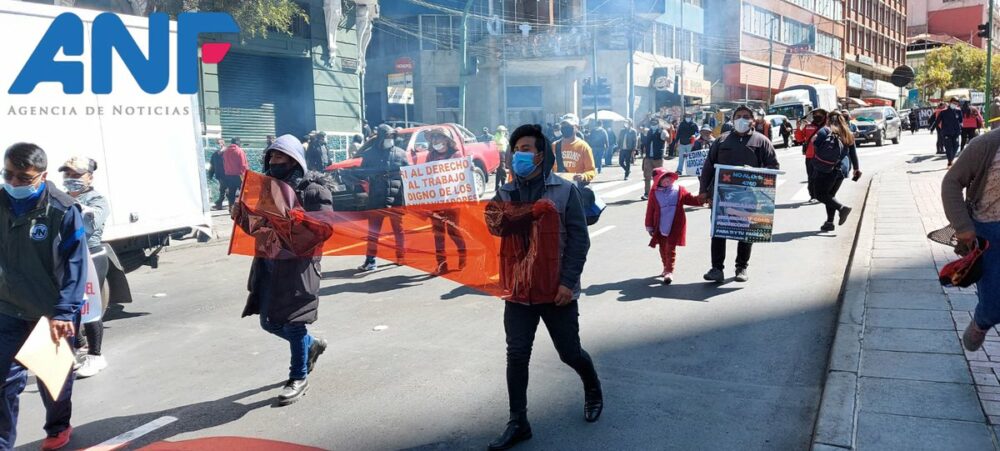 🔵 #ANF | Trabajadores marchan en el centro de #LaPaz y protestan por la prohibición de vidrios polarizados en los vehículos. Denuncian que al menos 400 familias fueron afectadas económicamente y anuncian radicalizar medidas de presión si el Gobierno no atienden su demanda. https://t.co/Sk1Tz09uUU