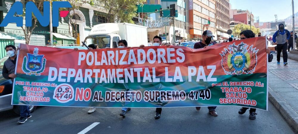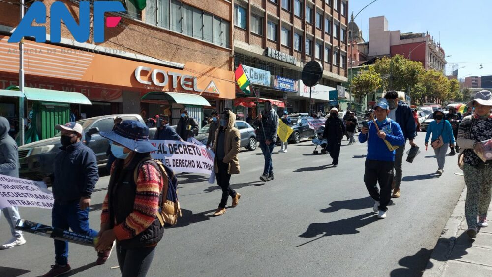 🔵 #ANF | Trabajadores marchan en el centro de #LaPaz y protestan por la prohibición de vidrios polarizados en los vehículos. Denuncian que al menos 400 familias fueron afectadas económicamente y anuncian radicalizar medidas de presión si el Gobierno no atienden su demanda. pic.twitter.com/Sk1Tz09uUU