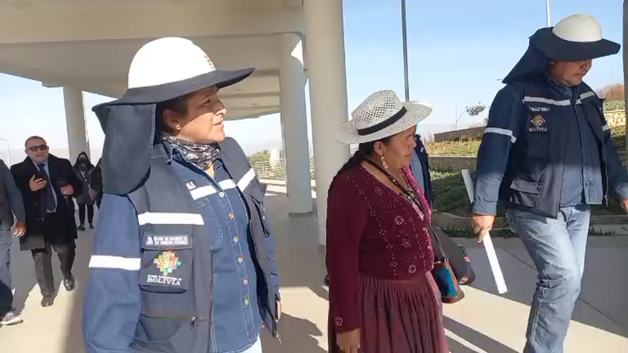 Sabina Orellana Cruz Ministra de Culturas, Descolonización y Despatriarcalización junto a los Técnicos de la Fps y personal de la gobernación de Cochabamaba realizan una inspección a los trabajos de remodelacion realizados en la Colina San Sebastían.