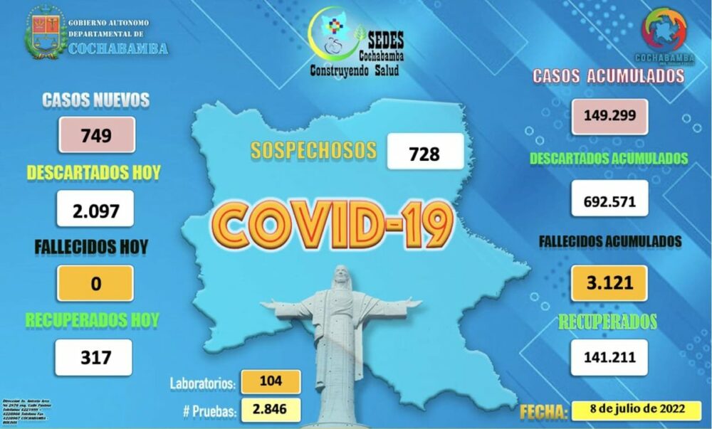 🔵 #ANF | #Salud El Sedes de #Cochabamba reporta 749 nuevos contagios y 317 recuperados. pic.twitter.com/Kpf4vCy12R