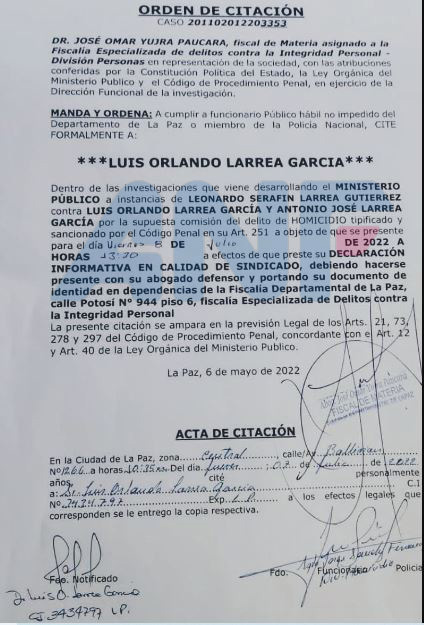 🔵 #ANF | #Seguridad Esta es la orden de citación de la Fiscalía al que acudió el presidente del Colegio Médico de Bolivia, Luis Larrea, y tras declarar fue aprehendido. pic.twitter.com/MPSnmA5g63
