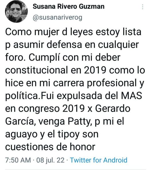 Susana Rivero:»Cumplí con mi deber constitucional en 2019 como lo hice en mi carrera profesional y política»