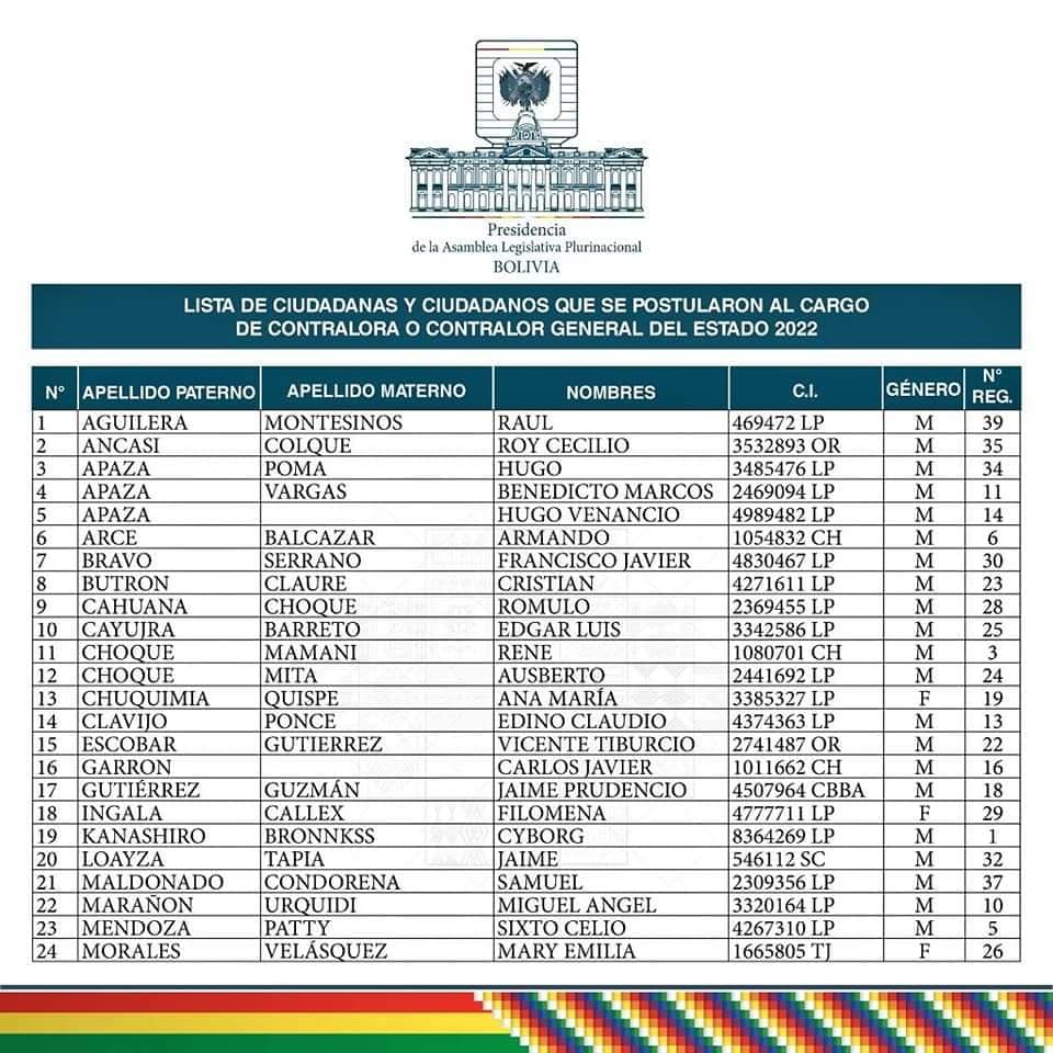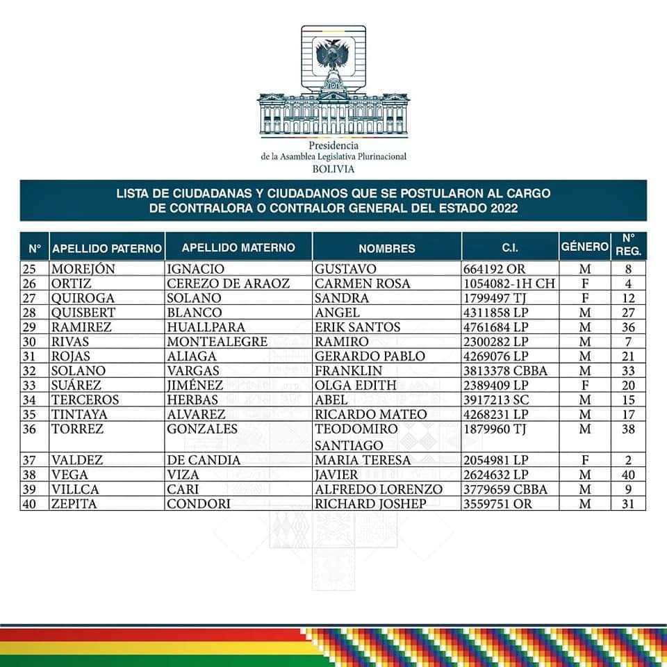 40 postulantes van por el cargo de Contralor o Contralora General del EstadoCategorías NoticiasEtiquetas , Agustín Zambrana en El Bunker, Facebook 10/07/2022 40 postulantes van por el cargo de Contralor o Contralora General del Estado 👇 Fuente: Agustín Zambrana en El Bunker