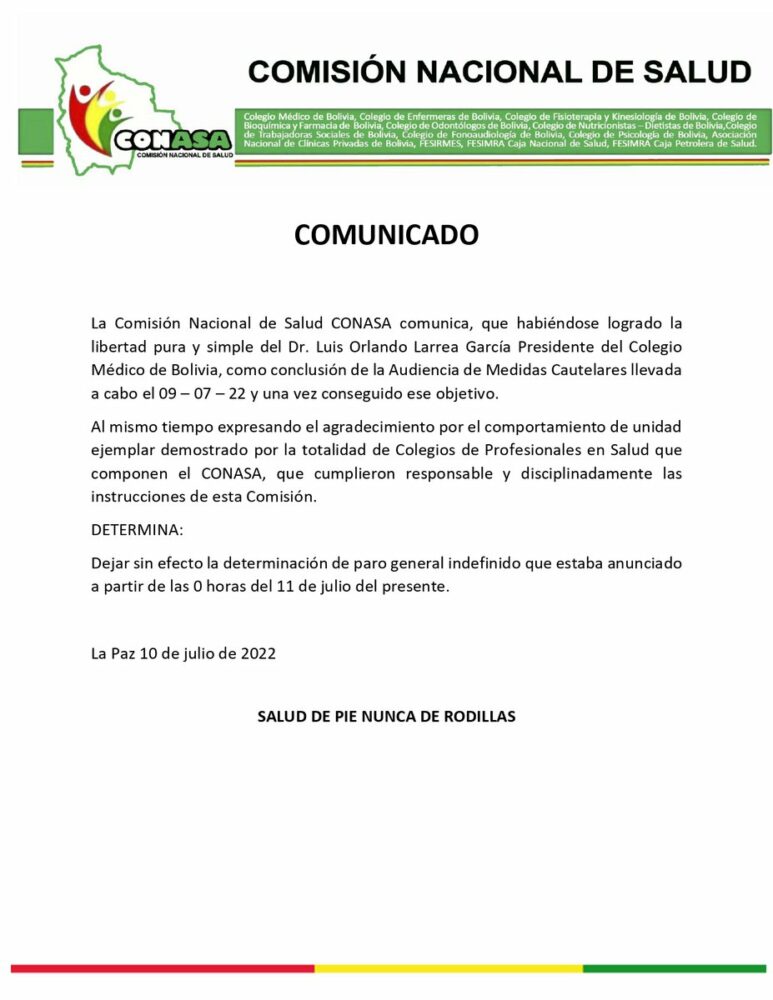 🔵#ANF | #Sociedad Tras la liberación de Larrea, médicos dejan sin efecto paro anunciado para este lunes