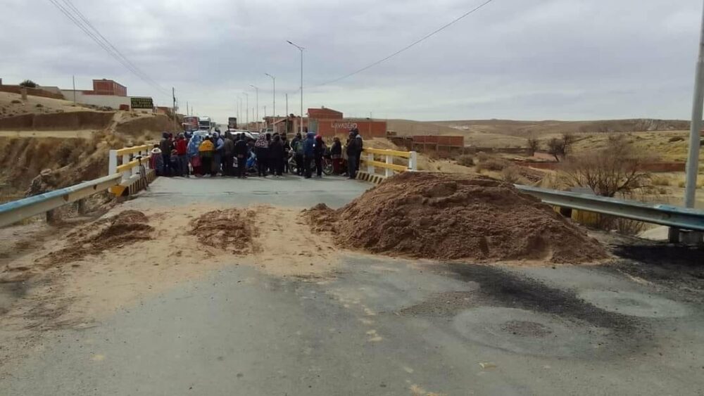 🔵 #ANF | #Sociedad Comerciantes bloquean la carretera Villazón – Tupiza. Denuncian supuestos abusos por parte de la Aduana Nacional en el control que se realiza en trancas.