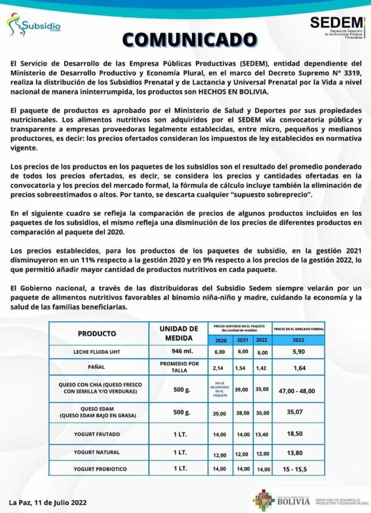 🔵 #ANF | El Servicio de Desarrollo de las Empresas Públicas Productivas (Sedem) descartó un sobreprecio en sus productos y aseguró que existe una disminución de los precios con respecto a gestiones anteriores. https://t.co/w7S3x1T7PS