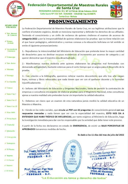 #SCZ: Maestros Rurales se declaran en estado de EMERGENCIA Pronunciamiento de FEDEMAR-SC 👇