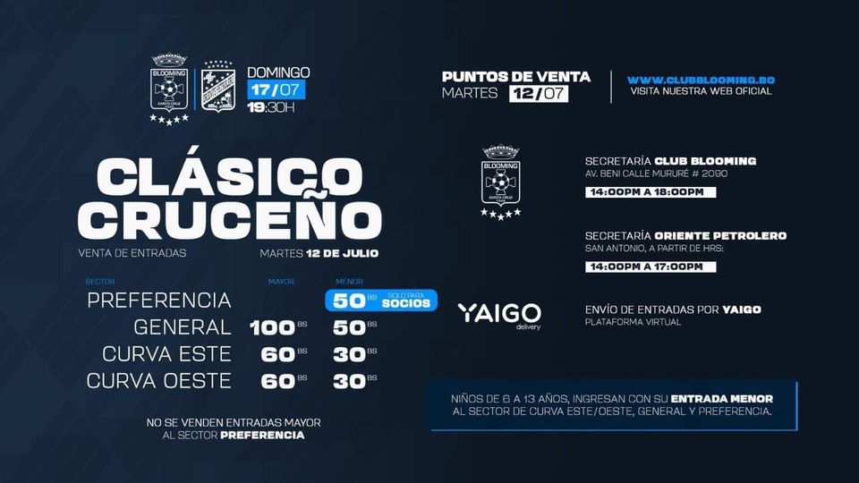 Sector de Preferencia solo Pará socios, Los hinchas de #OrientePetrolero tendrán que ir a…