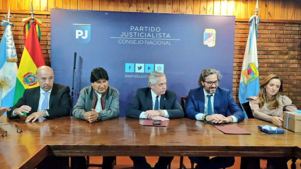 Un encuentro, hoy, con el @p_justicialista y el Consejo Nacional. Gracias al presidente @alferdez y a todos las hermanas y hermanos argentinos por el cariño y admiración por #Bolivia; sentimientos mutuos.