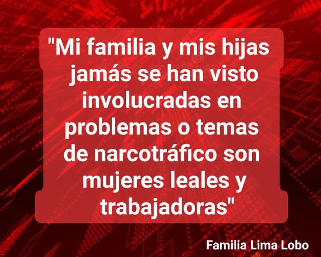 Mi familia y mis hijas jamás se han visto involucradas en problemas o temas de narcotrafico son mujeres leales y trabajadoras , los errores son personales y no deberÃan afectar a terceras personas , no olvidando que existe la justicia Divina .