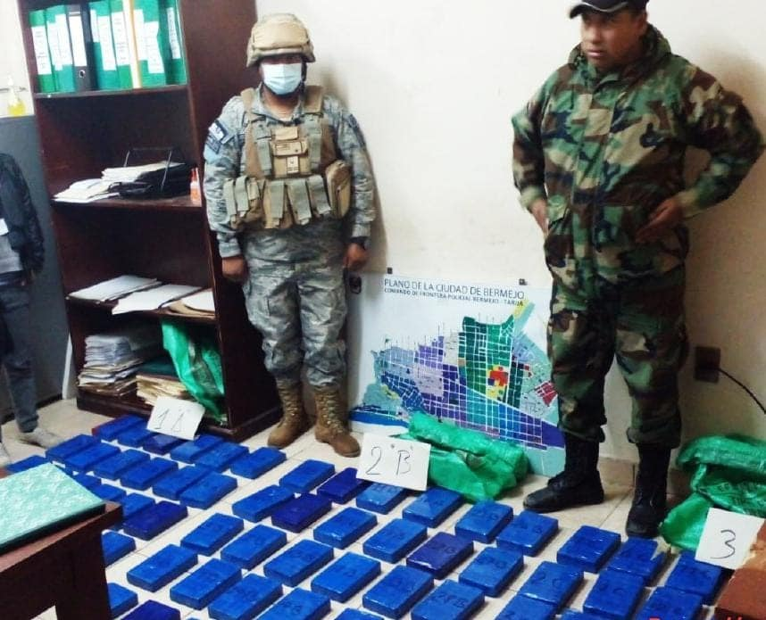 🔵#ANF | #Seguridad Efectivos Navales del Área Naval No. 3 “BERMEJO” de la Armada Boliviana decomisan 90 paquetes de cocaína en el Puesto de Control Fijo del Puente Internacional del Municipio de Bermejo, que conecta #Bolivia con #Argentina.