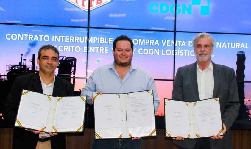 Yacimientos Petrolíferos Fiscales Bolivianos (YPFB) y la empresa CDGN Logística S.A suscribieron el viernes un contrato interrumpible de compra venta de gas natural, para la comercialización de un volumen de hasta 4 millones de metros cúbicos por día (MMmcd) en el mercado brasilero, sujeto a disponibilidad de la empresa estatal.