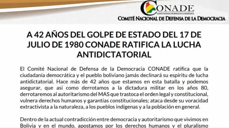 #ANF | Conade convoca a las movilizaciones del 21 de julio en contra del «autoritarismo» del MAS https://t.co/o1kD1pCLfP a través de @noticiasfides